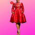 Red dress with large button decor on top and hidden zipper front closure.  She has pockets too!