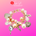 Pearl Metal Bow Bag Stiletto Heel Mirror Heart Charm Toggle Bracelet 1.5" X 8"